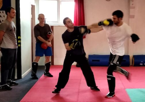 The sparring was continuous for 3 1/2 hours! Everyone mangaed to spar within their rules of choice in the event they had chosen. Some enjoyed light contact whilst others favoured a more full contact approach. Either way, the fighters learnt a lot from sparring the range of opponents present. In addition, the skill from the 'Pushing Hands' practice proved very useful during some of the harder fought clinches.